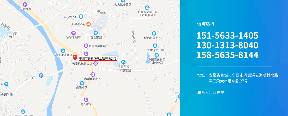 - 寧國(guó)市安宏鉆井工程有限公司,前為安徽興旺鉆井工程隊(duì)成立于1998年,公司從事安徽鉆井(宣城打井、寧國(guó)打井、蕪湖打井、池州打井、宿州打井、桐城打井、銅陵打井、南陵打井、郎溪打井、廣德打井、績(jī)溪打井、馬鞍山打井等),江蘇鉆井(南京打井、高淳打井...